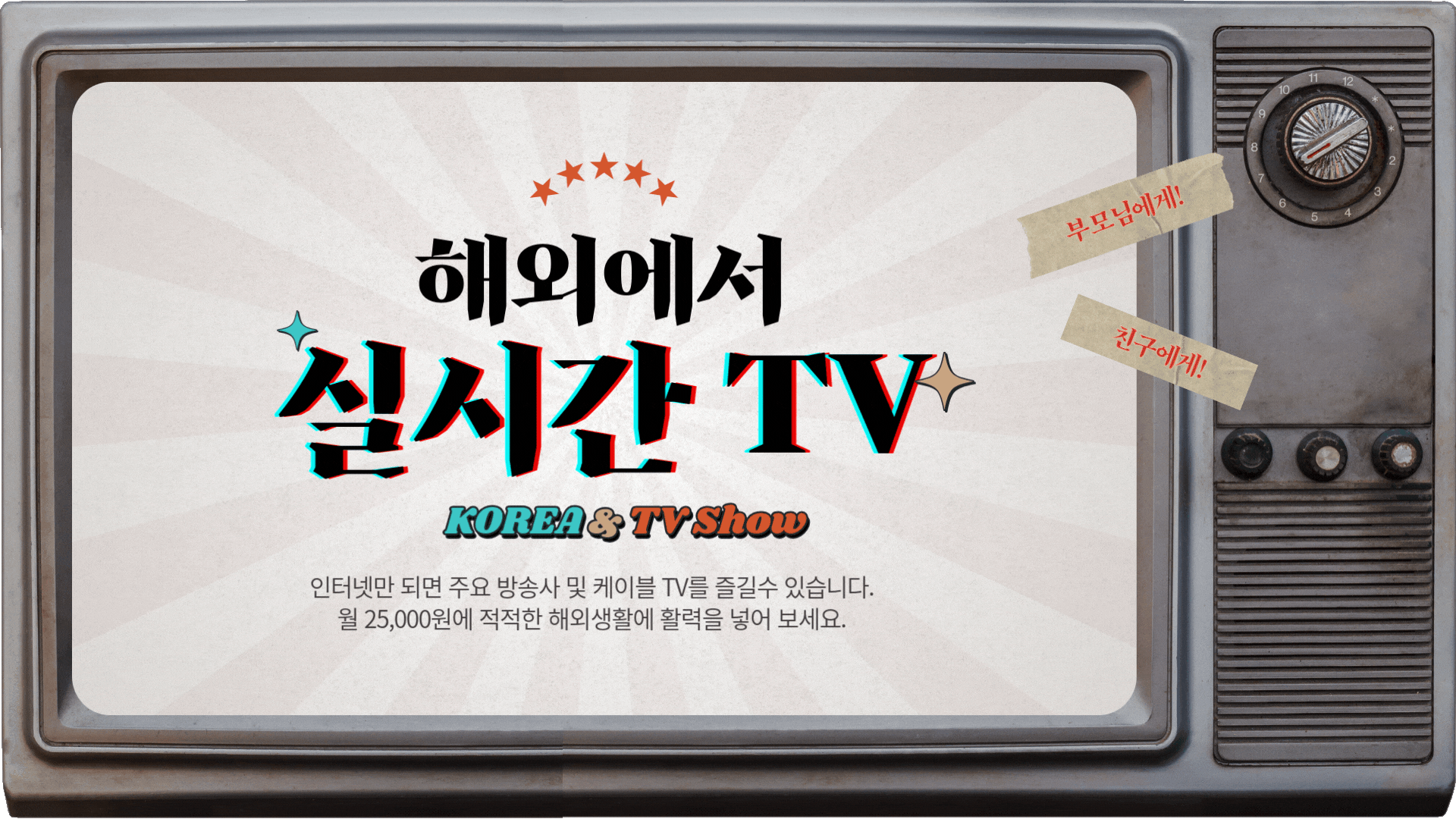 TV와 인터넷만 있다면, 지금 계신 그곳이 곧 한국 집 거실이 됩니다.